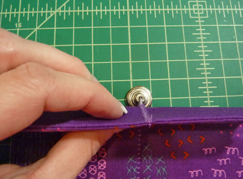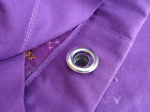 NOTE: If you are new to this technique, we have a full, step-by-step tutorial on setting metal grommets. - Remove the basting thread from the bottom of the facing as well as from the exterior base panel.
