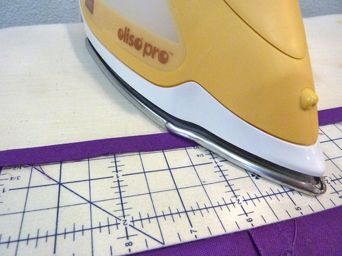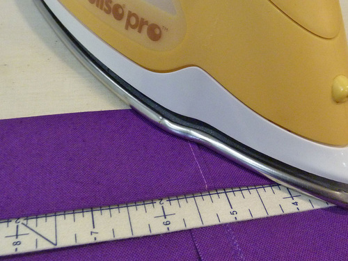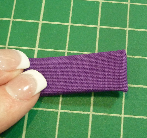 - Fold each strip in half right sides together to set a center crease. Press in each long raw edge so they meet in the middle at the crease line.