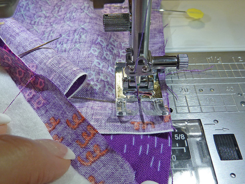 - Press all the seam allowances together and towards the A panels. Pin lightly to secure the seam allowance.