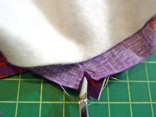 - Clip the corners and the curves and grade the seam allowance, trimming back the canvas.