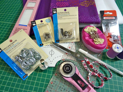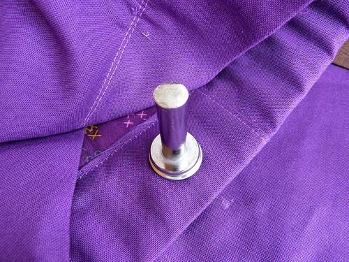 Rivets, grommets, and button studs are functional notions that go where standard sewing machines often fear to tread: the narrow, the thick, the heavy parts of construction. Plus, you get to hit your project with a hammer. How often have you wanted to do that just because?!