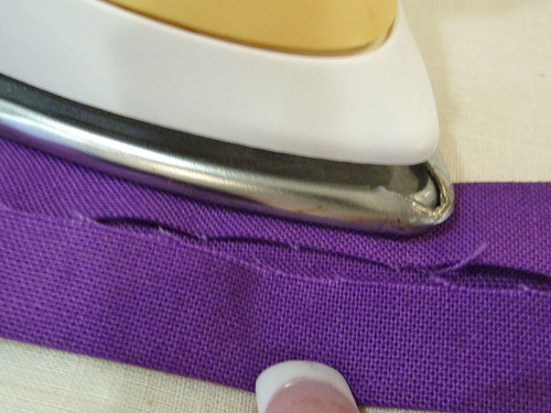 - Along the top of the sewn panel, fold down and press the raw edge ½”.