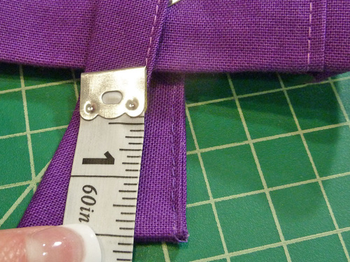 - Mark the position for the rivet 1″ up from the top folded edge of the bag.