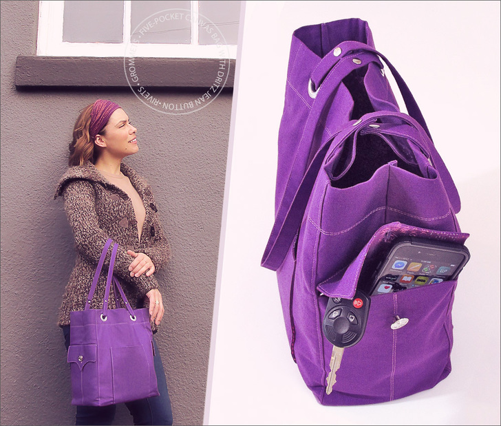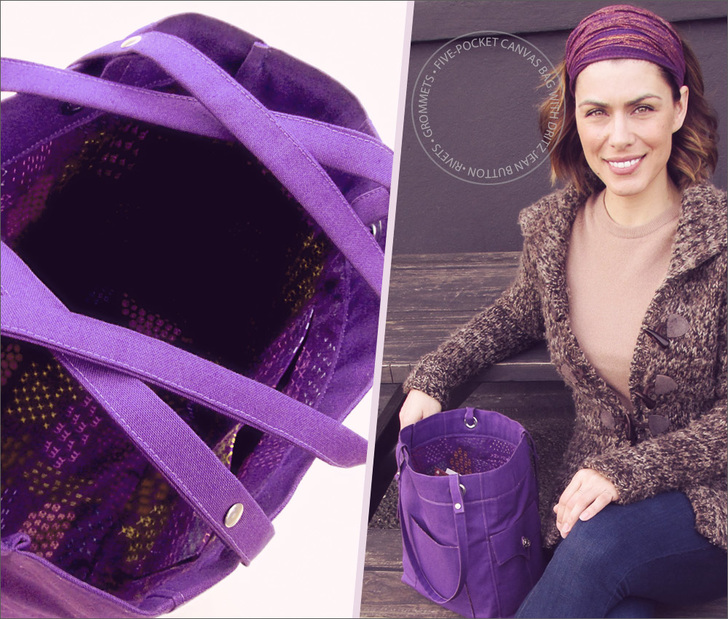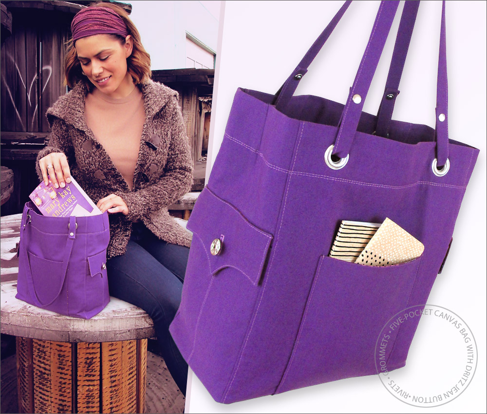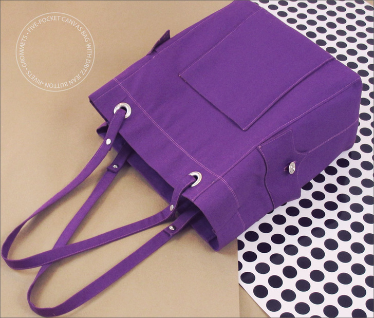 Since the jean buttons and rivets are familiar findings on denim jeans and jackets, we added a few more elements to the bag to echo this fave casual style. There’s twin needle topstitching around the opening of the bag and along the side pockets.
