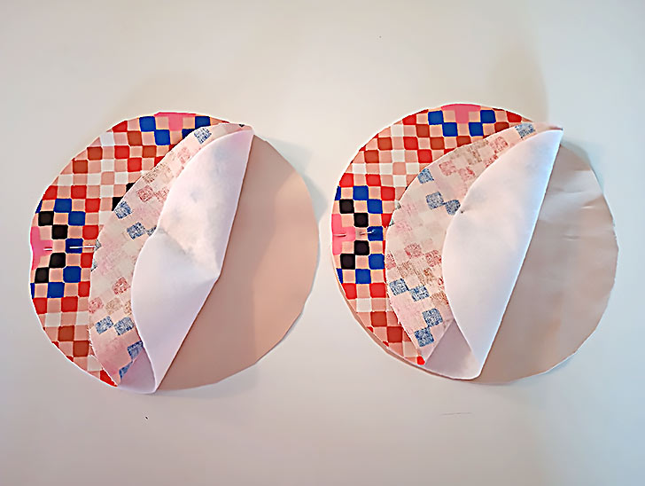 - Find the round base layers for the ends of bag: exterior, lining, and fusible fleece.