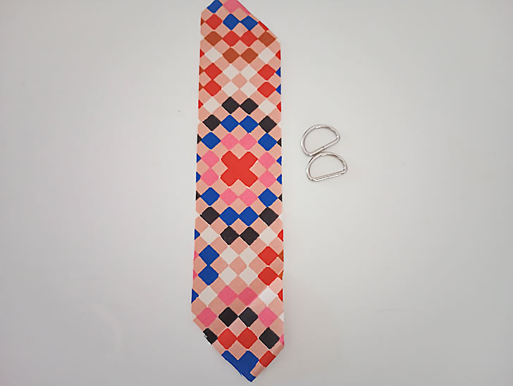 - Find the remaining 2½” x 5″ bias strip and the 6″ length of 1″ interfacing. Also collect the two 1″ D-rings.