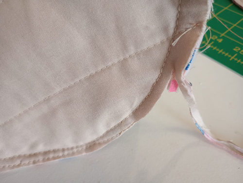 - Turn right side out so the layers are now wrong sides together. Press flat, making sure the seam runs straight and true across the top edge and the bottom curved edges are flush.