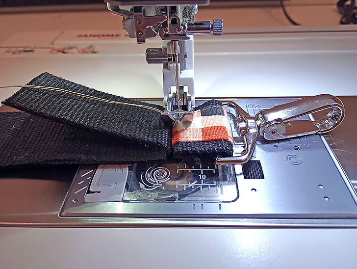 - However, it was very thick and a challenge even for our incredible Janome power and precision. Since the webbing does not fray and the fabric reveal is minimum, we would recommend you use a little bit of seam sealant across the raw end of the fabric strip and then stitch the end down flat with a dense zig zag. Again, this process is described in our technique tutorial.