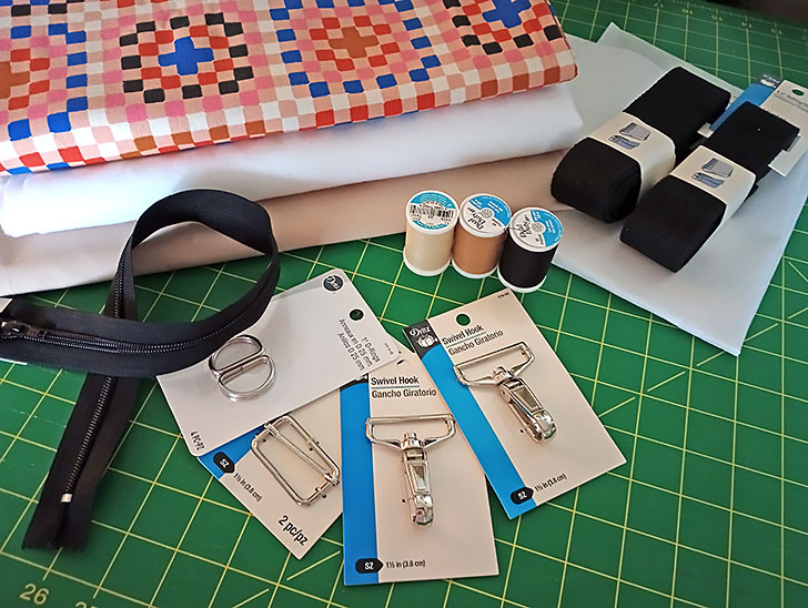 - 1½ yards of 44”+ wide lightweight canvas or similar for bag exterior; we originally used 44” Granny Square in Dahlia from the Honey collection by Alexia Abegg for Ruby Star Society