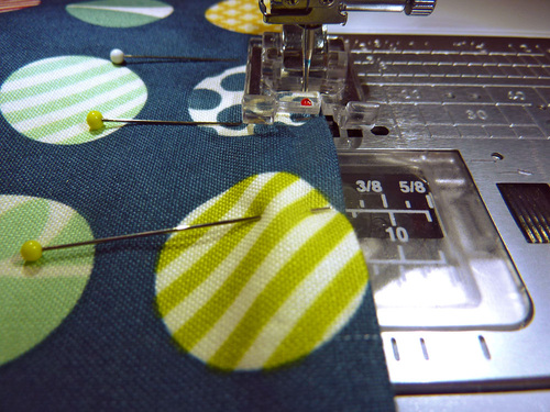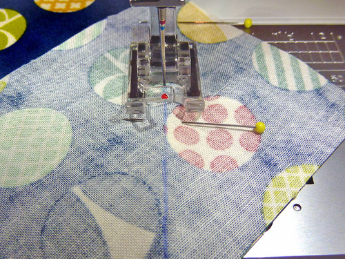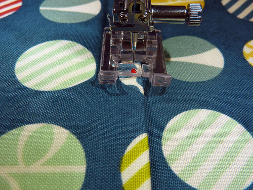 - Still using a Even Feed or Walking foot if possible or engaging your machines built-in fabric feeding system, stitch all around, using a ½” seam allowance. Shorten your stitch length, which will allow a smoother line around all the curves. For more on this technique, see our tutorial on Sewing Smooth Curves.