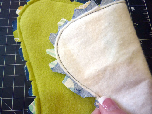 - Generously clip all the curves and trim back both the batting and the fleece to further reduce bulk. This is known as grading your seam allowance.