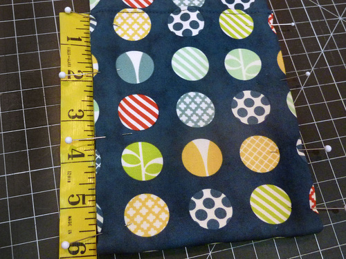 - Fold up the bottom edge 6″ and pin in place along both sides.
