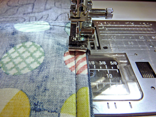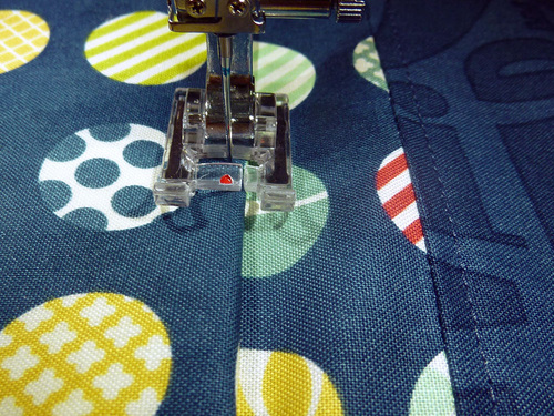 - Edgestitch just across the just the top folded edge of the flap, running the seam approximately ⅛” from the folded edge.