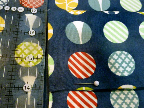 - Place each upper panel right sides together with a bottom panel along the inner 17″ raw edges. If you are using a directional fabric, make sure you are aligning the bottom of the upper panel with the top of the lower panel. Pin in place.