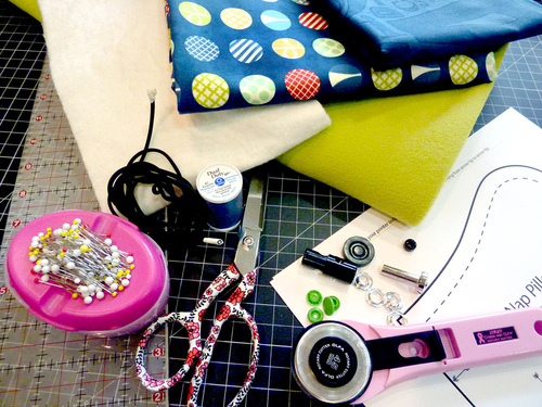 - Scrap or ⅓ yard of 20″ + wide low loft batting for the pillow