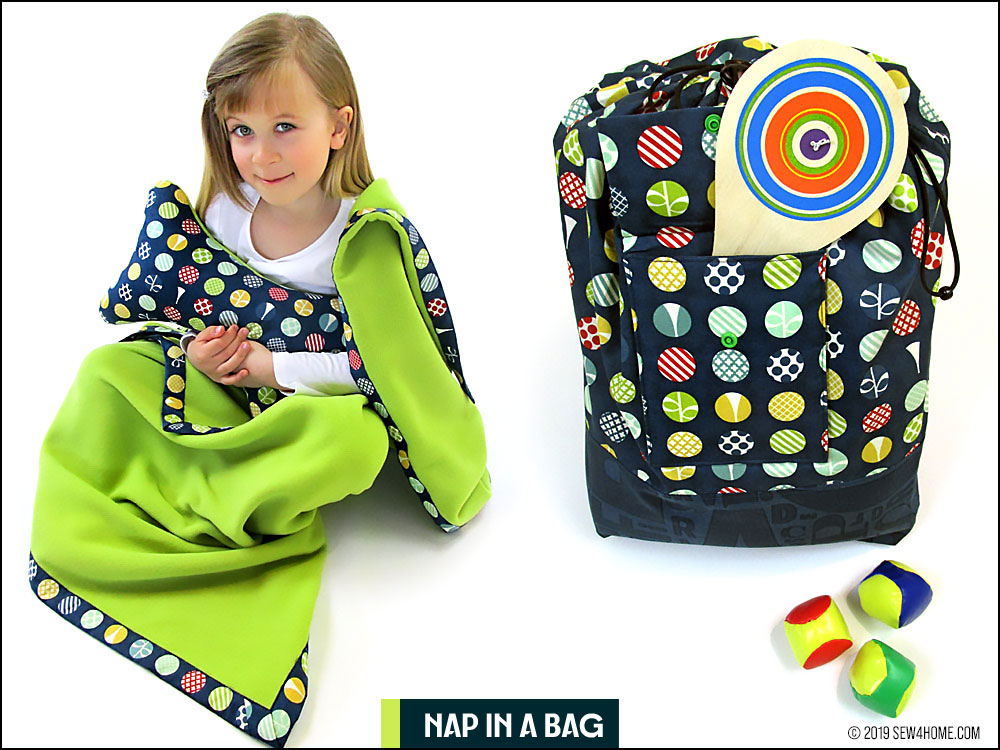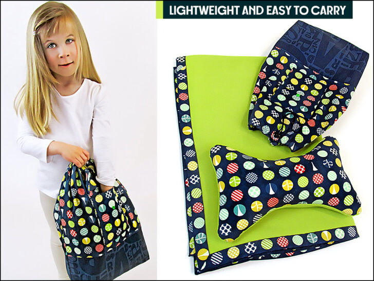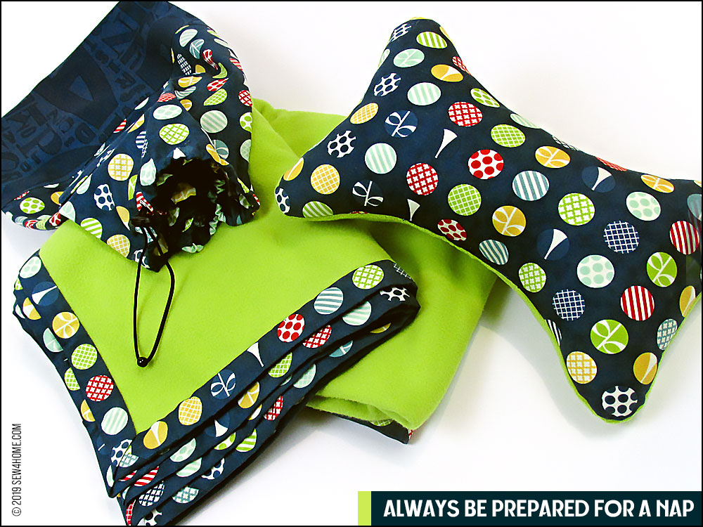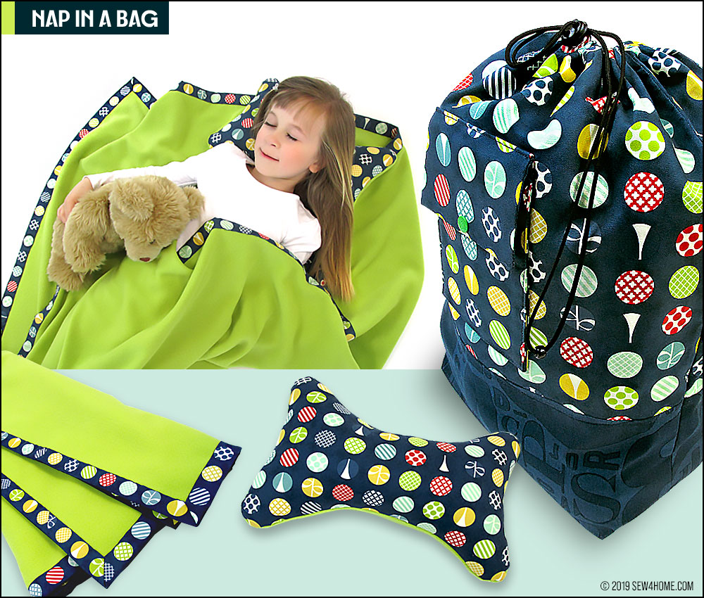 Do you have a little one in daycare, pre-school or kindergarten where daily rest time is on the schedule? Our clever portable sleep set is a great option for school naps – or really anywhere a nap is needed. We created a lightweight drawstring bag that holds a bound fleece blanket and a matching pillow. Take it to school. Toss the bag in the car for longer road trips. Keep one at Grandma’s for napping emergencies. Better still… make one for yourself, because we all know naps are wasted on the young!