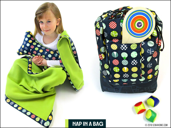 Our Nap in a Bag is sized for a lightweight fleece. If you’d rather use a thicker fleece, make the blanket and pillow first, then fold them up as described above to double-check the size. If your set measures much more than about 14″ in height or 30″ in girth, consider enlarging the bag.