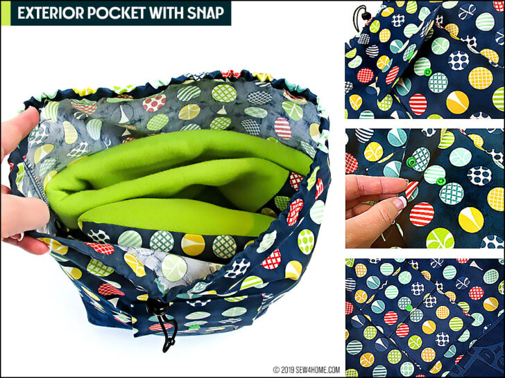 - If you’d rather not install a snap, you could also use a sew-on Velcro® dot to hold the pocket closed.