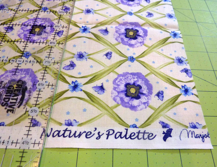 - ¼ yard of 44-45″ wide coordinating fabric for the outside of the accent band: we used two fabrics from the Nature’s Palette collection by Marjolein Bastin for FreeSpirit Fabrics: Floral Chain in Purple (006-Purple) and Caning in Green (008-Green)