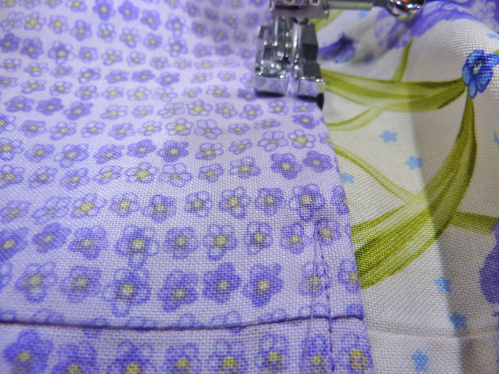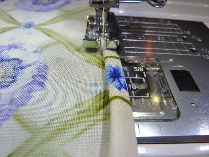 - Fold the raw edge into the crease, creating a ¼” doubleturn hem. Stitch the hem in place. We used our Janome Quarter Inch Seam foot to maintain a perfectly straight seam.