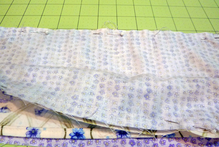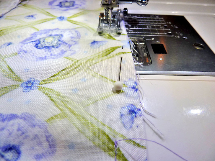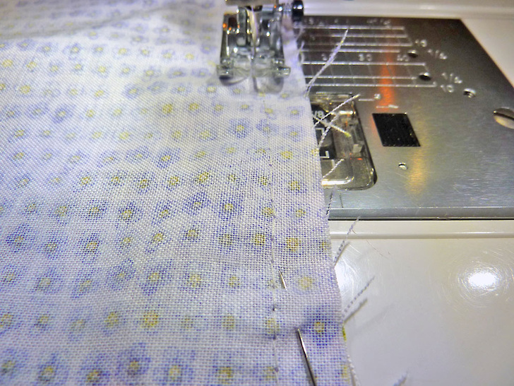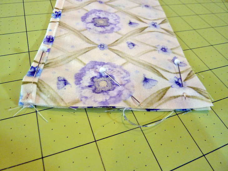 - Pin along the remaining raw-edged side (the raw 27″ side) and across the bottom. The top remains open.