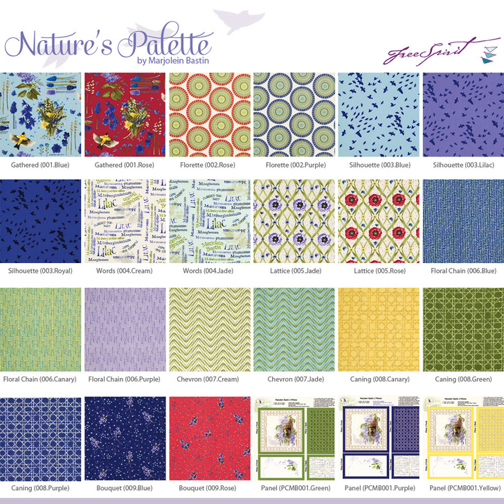 Our thanks to all our friends at FreeSpirit for selecting us to create the debut project collection for their new Marjolein Bastin collection. Nature’s Palette ships this month to in-store and online retailers. Click here for a complete FreeSpirit Dealer Locator. Not all dealers receive and/or display fabrics at the same time. And remember, if your favorite retailer doesn’t carry Nature’s Palette you can always request a special order.