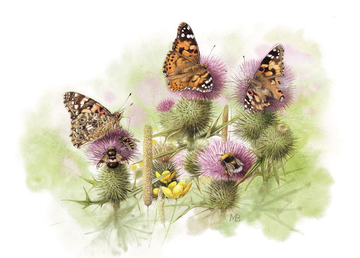 Since the early nineties, Marjolein has worked with several companies in the US. For her, it was a similar eye-opening experience to her childhood move to the Veluwe. She began painting American nature in her unique way, looking not at the vast landscapes but at the small, fascinating treasures. “Unknown birds, new flowers, unfamiliar butterflies – I had to start all over, I had to look up everything! I love to share the beauty of American nature.”