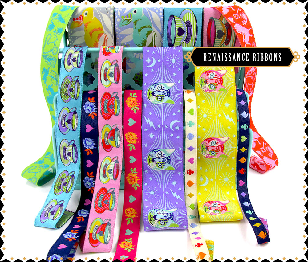 You’ll want to be on the lookout for Curiouser and Curiouser kits from Renaissance Ribbons featuring both the ribbon and the fabric. If you haven’t yet signed up for the Renaissance Ribbons Kit Club, check it out. You get complete supplies to make TWO new bags every month with a gorgeous and unique selection of materials.