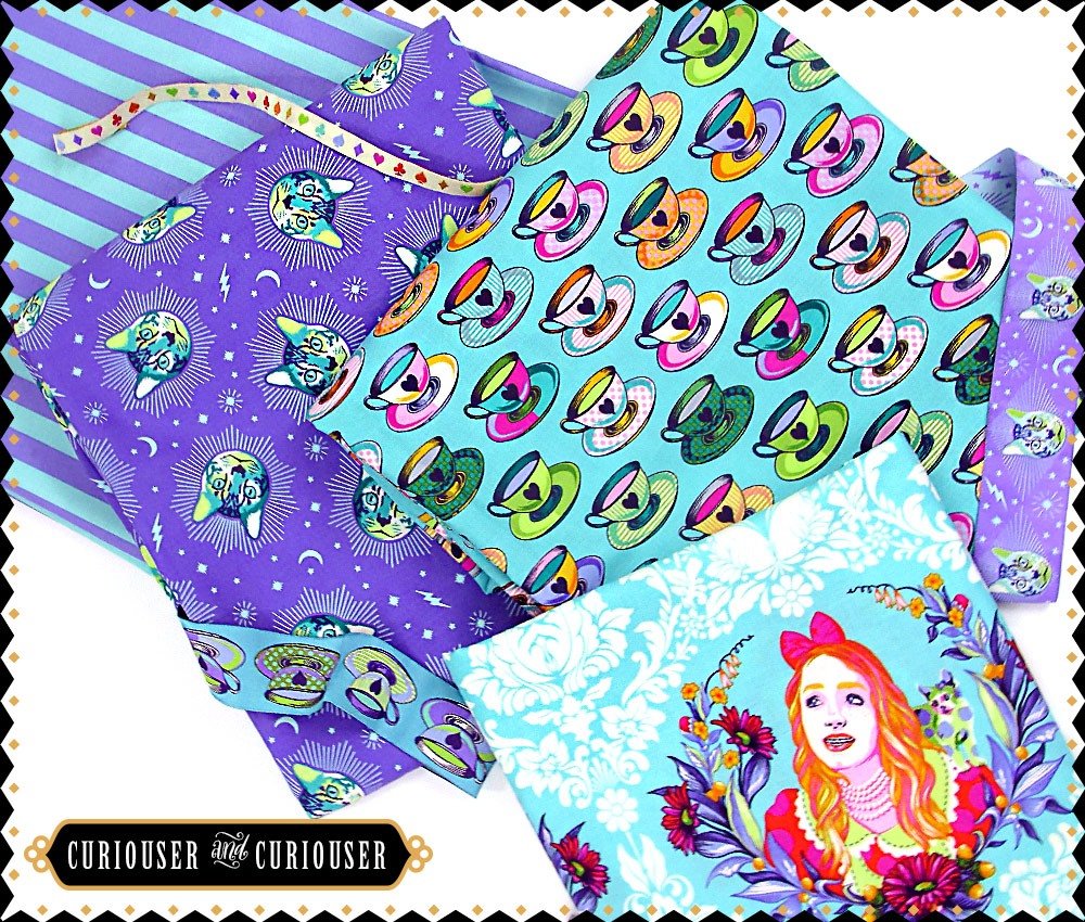 “When I used to read fairy tales, I fancied that kind of thing never happened, and now here I am in the middle of one!” Alice, from Alice’s Adventures in Wonderland by Lewis Carroll. Get ready to find yourself right there with Alice with Curiouser and Curiouser fabric and ribbon.