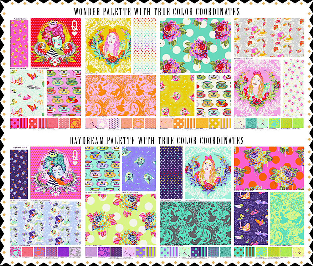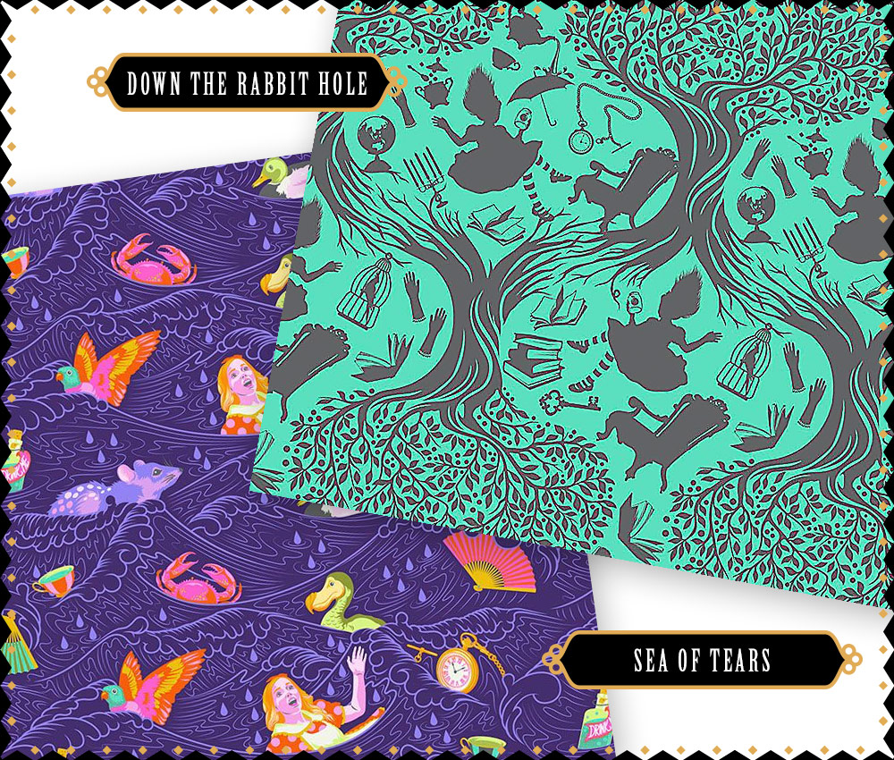 The wild whimsy of Wonderland begs us to question everything we know, throw away our assumptions, and succumb to nonsense. “The loosest grip on reality wins,” says Tula. “Wonderland captures the most essential nature of what I want my fabric to be and why I quilt… escapism. When the weight of the world is too much I turn to needle and thread.”