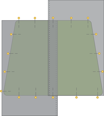 - Make a second paper pattern to use to cut your fabric. Use the first pattern as your base, but extend it 1½” on all four sides. This provides the depth needed for the front part of the 2″ box corners plus the ½” seam allowance. (In our sample, that meant our fabric pattern was 16¼” across the back, 17¼” across the front and 16″ from front to back through the center.)