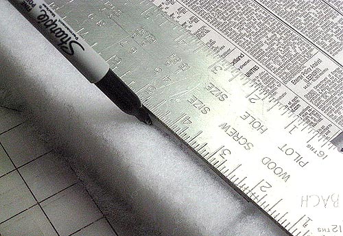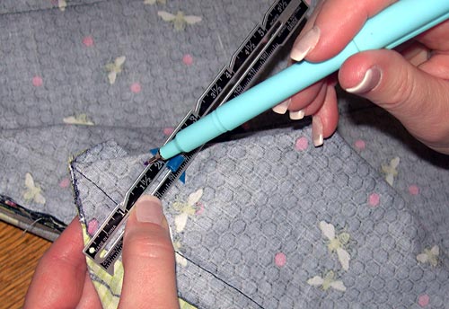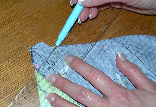 - Make a couple dots with your fabric pen or pencil to mark this width line.