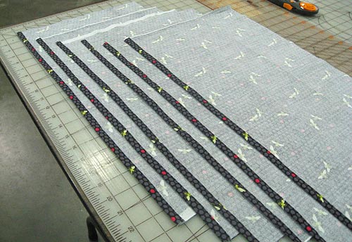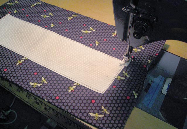 NOTE: If the foot of your machine is sticking or dragging on the gripper fabric, you can switch to a Teflon® type foot, such as Janome’s UltraGlide foot, or you can try laying a sheet of wax paper on top, which is easy to see through and tear away, but helps a regular foot to move across without drag.