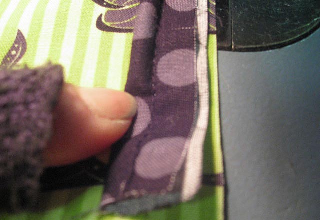 - Still using a Zipper foot, stitch the piping in place, staying as close to the cording as possible.