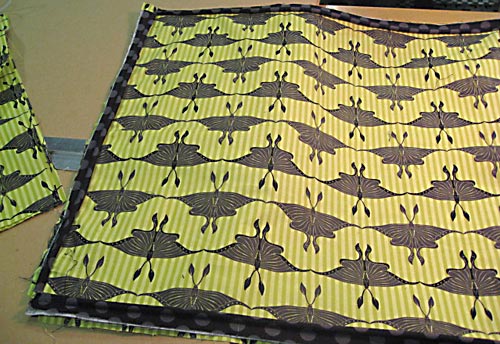 NOTE: The gripper fabric will not fray, so the edges can be simply straight cut and stitched in place; they don’t need to be hemmed. - Repeat for all the remaining cushion bottom pieces.
