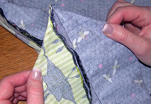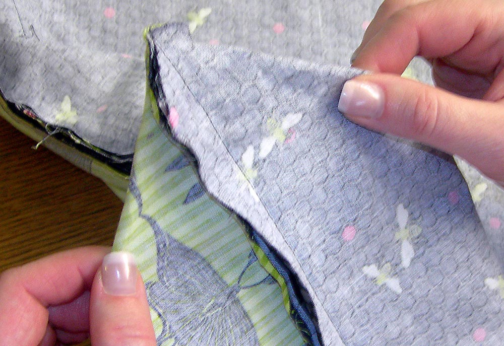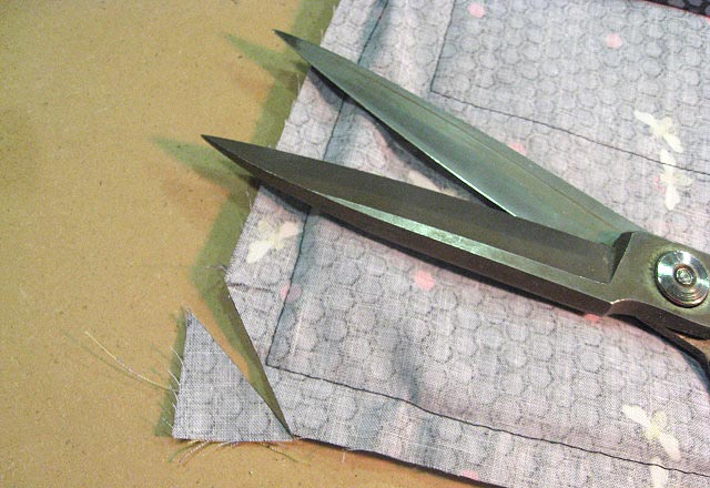 - With the cushion cover still wrong sides out, trim each of your four corners.