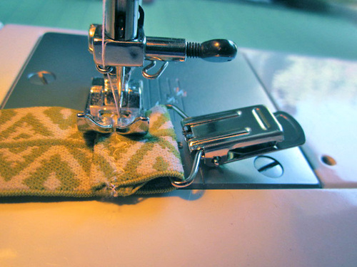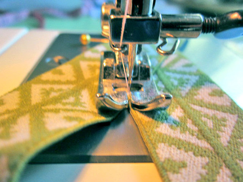 - You can use matching thread, as we did with our green Fold-Over Elastic.