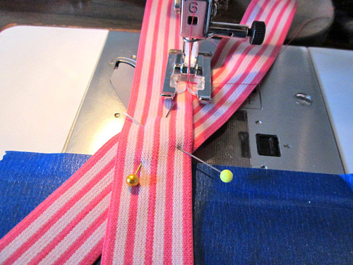 - Or, use a contrasting thread, as we did with our pink striped pair.