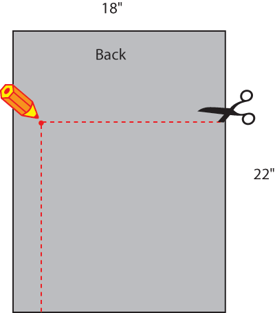 - From the fabric for the back (velvet in our sample) cut TWO identical pieces 18¼” x 16½”.