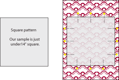 - Use this pattern to cut the accent fabric for your covers, moving the square over the design to center your motifs in a pleasing way. For two chair covers, you need to cut two squares.