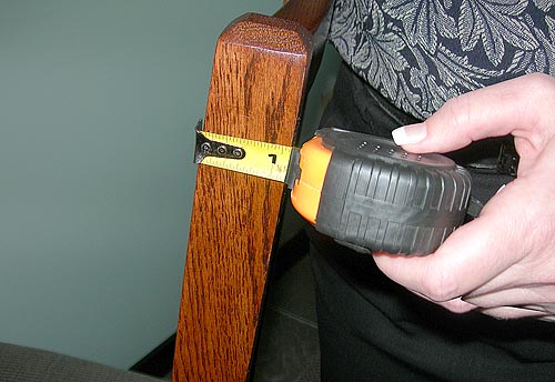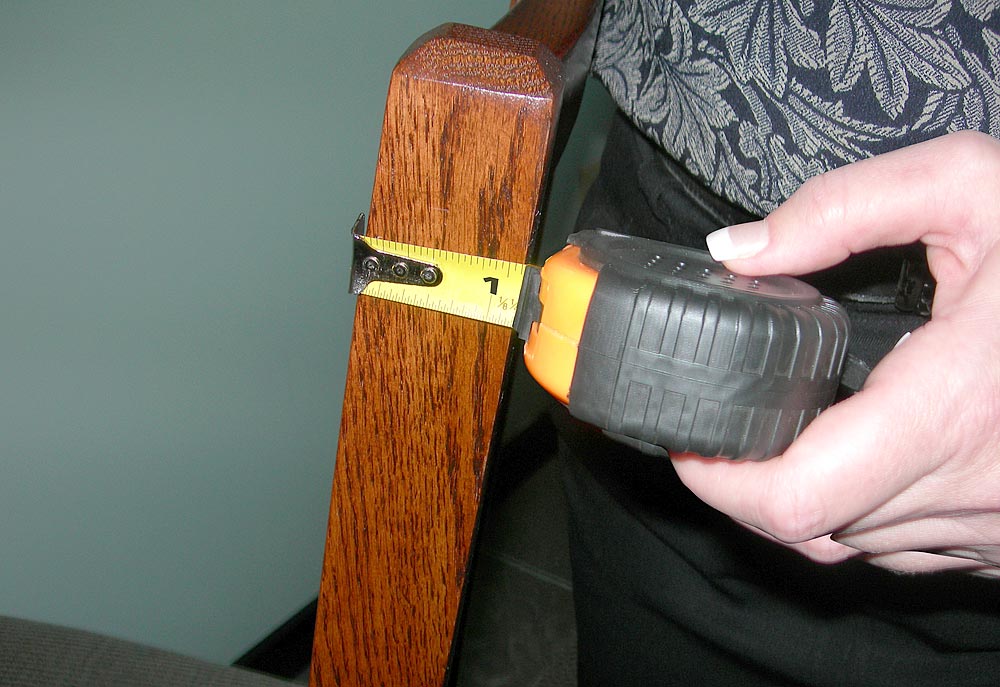 - Measure the depth of the chair back frame. Ours was 1¼”. Add this to your width measurement. In our sample, we are now up to 17¼”.