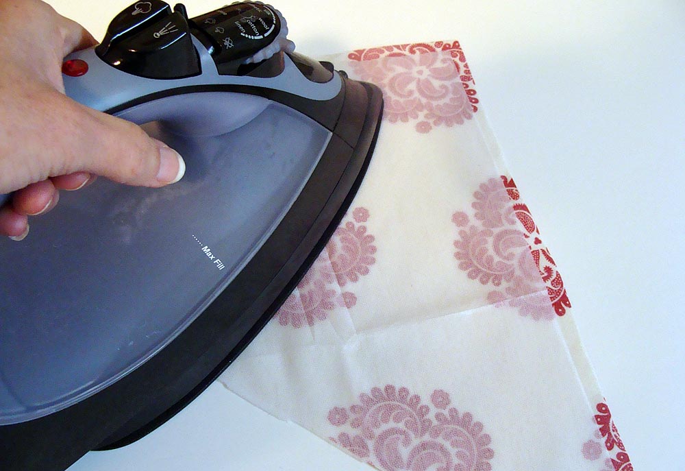 - Following manufacturer’s directions, iron a fusible interfacing triangle to the wrong side of each fabric triangle.