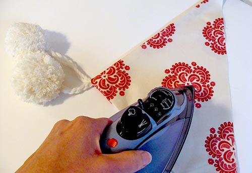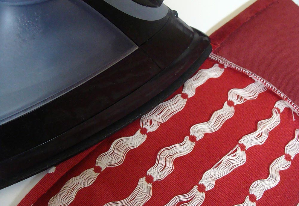 - Turn under another ½”, press again. Pin in place and stitch close to the fold.