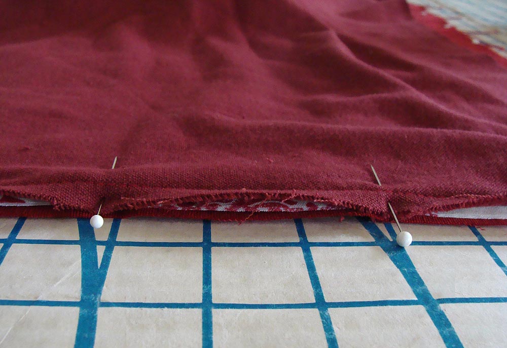 - To create the hem, turn under the bottom raw edge ½” and press.