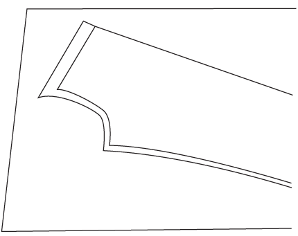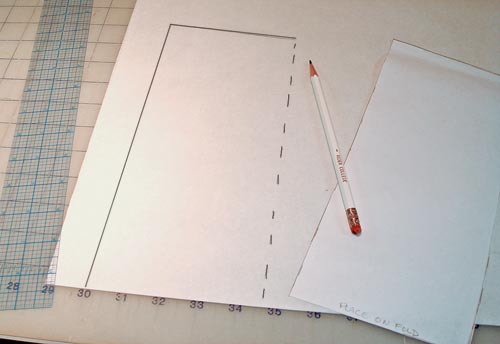 - Remove the new paper from the existing pattern. Draw a new line parallel to the dashed line, at the same depth as the finished cuff. In our sample, that meant we drew a new line 4½” from the dashed line.