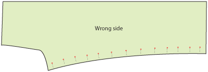 - Stitch the two pieces together, following the “U” shape, removing pins as you go.