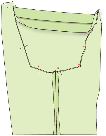 - Starting at the bottom, or cuff of the pants, pin along the inside, curved edge, ending at the outermost section of the crotch.