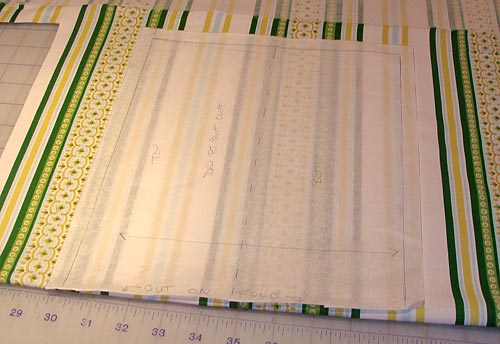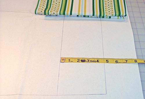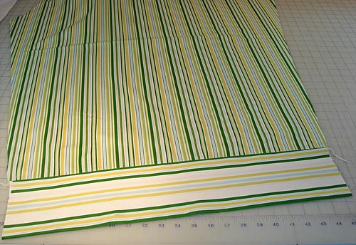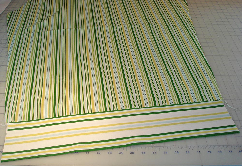 - There are a couple different methods to determine this depth. You can look at the overall length and, with your tape measurer, decide the measurement that looks proportionate. Or, like us, because we used a striped fabric, you can choose a dominant repeat to determine the depth. For our Bonnes Amies Marseille Jacques fabric, the appropriate depth was 4½” (this is the depth without the seam allowance; we’ll add that later).