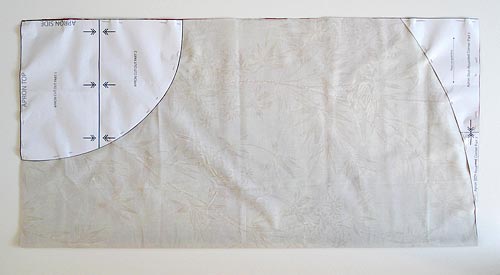 5. On the upper left hand corner of the folded fabrics, pin the Armhole Curve Template, matching the top and left side as indicated on the template.
