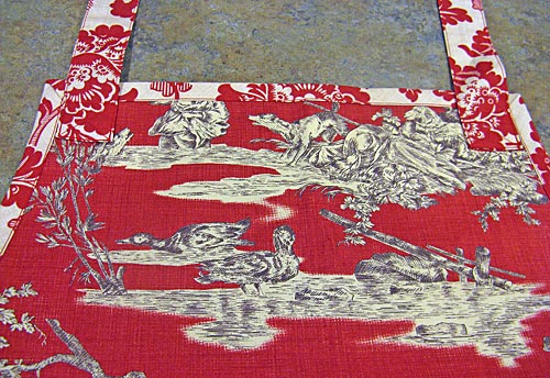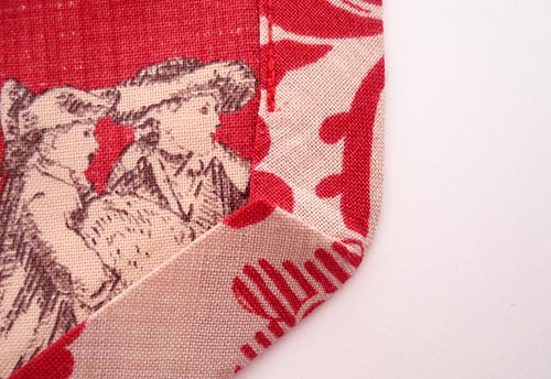 4. Edgestitch along the both sides and along the bottom to secure the pocket. The top is, of course, open. Remember to pivot at the bottom corners and back tack at top corners for extra strength.